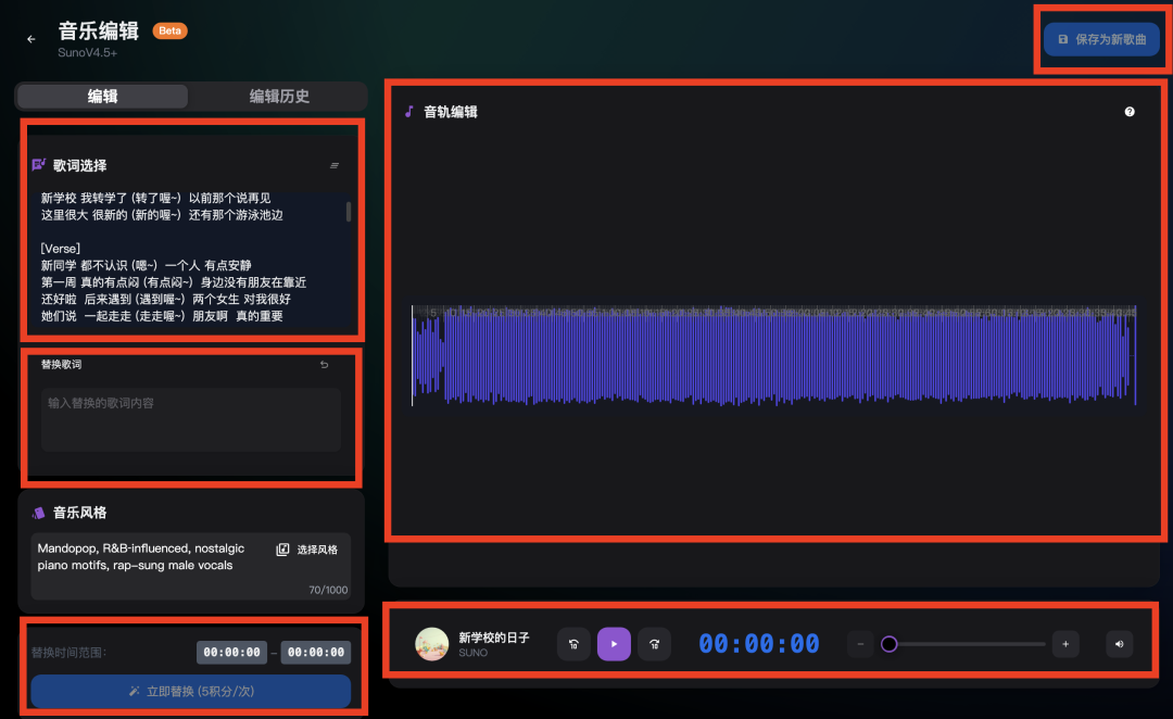 谱乐AI「局部编辑」现已上线:精准选中一小段歌词/旋律,单独重生成,保留原来的音色与情绪,不再整曲重来。