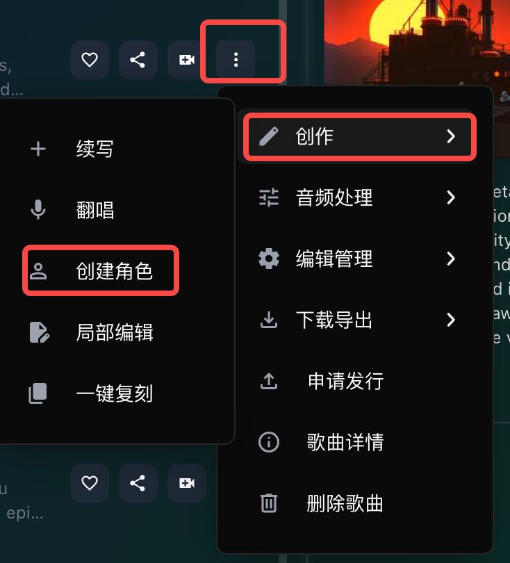 位置:Suno 的生成歌曲-省略号-创作-创建角色